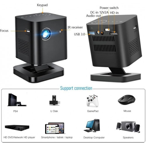 GXJBGYUSFT Miniproyector portátil de Bolsillo LED DLP para Exteriores, Cine en casa, 3D, 4K, 1080P, Inteligente, con Android, WiFi (D, como se Muestra)