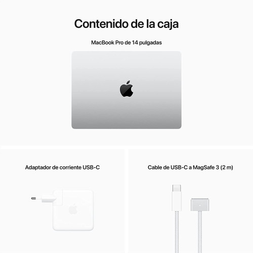MacBook Pro de 14 pulgadas, Cable de USB-C a MagSafe 3 (2 m), Adaptador de corriente USB-C de 67 W