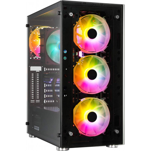 • La CPU Intel i9 13900K ofrece un alto rendimiento para juegos y aplicaciones multimedia. Con la rápida CPU de 24 núcleos y una velocidad de reloj de hasta 5,10 GHz, todos los programas habituales pueden ejecutarse a la velocidad del rayo. El sistema se completa visualmente con la caja SQ-Tower 01, equipada con cristal templado y ventiladores RGB, que garantizan una refrigeración óptima incluso en batallas acaloradas.
