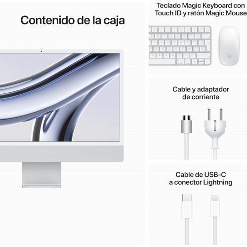 | Componentes incluidos | Cable de USB‑C a conector Lightning, Magic Mouse, iMac, Magic Keyboard, Cable y adaptador de corriente |