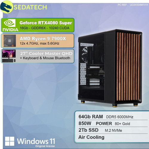 Sedatech Pack Workstation AMD Ryzen 9 7900X RTX4080 Super 64Gb DDR5 2Tb SSD M.2 Windows 11 Monitor 27"