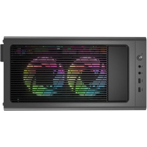 • Arquitectura térmica ARGB: diseñada a medida para un rendimiento silencioso con refrigeración por aire de triple ventilador y un enfriador de 150 W, además de ventilación de malla frontal para un flujo de aire óptimo. El panel lateral de vidrio sin herramientas resalta la iluminación RGB interna y crea una plataforma de juego visualmente impresionante