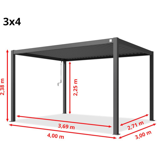 Pergola 3x4 m Postes de Aluminio con Techo de Lamas de Acero